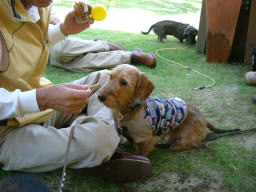 *おやつタイム実況中継* 食いつかれる人『親分』 まずは西部地区代表アトムくん登場 そして、東海地区代表花さん あっ・・西部地区期待の星カトルくんも現れました 東海の姐さん、ちこ嬢、得意のポーズです ん?ラック総長そ知らぬ顔 いよいよ引退説は本当か!? |