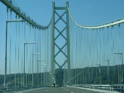 初めて渡る「明石海峡大橋」。この素晴らしい青空!