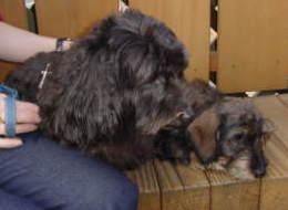 小春ももうすぐ4ヶ月。そろそろ毛を抜いたほうがいいのかな〜と思っていたら ワイヤー仲間の「まりてぃ」さんからアドバイスを頂いたので早速少しやってみた 親指と人差し指でつまんで抜く。左手で毛の根元を押さえて引っ張れないようにしてみた。 「これでいいのかな〜?」小春は嫌がっても痛がってもいないので大丈夫かな? 頭は少し嫌な様子・・頭だけ全部抜いてみたら・・・ 「はれ?段がついてる?」離れて見てみると正面のあたりが変! なんだかカールしてるように見える上にその部分だけ毛が黒っぽいので 「横山ノック」みたいになってしまった・・・「ノックちゃん」と呼ばれる小春でした |