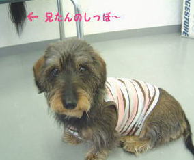 いひひっ。今日はあたち告げ口しゃうわ〜 兄たんね、おニューのシャッにしっこがかかっちゃってションボリなの 兄たんってね「お気に入り」とそうでないシャツとあるみたいなのよね しっこで濡れちゃったのは、どうやら「お気に入り」だったらしいの あたちは何でもいいから、何が違うのかは分からないんだけどね ![]() ほら、ニッコリでしょ^^これは掛かる前なの ![]() 母たんも、もちろんションボリだったの〜 |