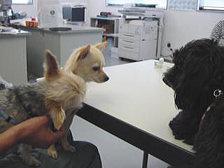 今日は「先生」に行ったの。ボクは付き添いだよ 待合室で小春がボクに引っ付いてきて、ちょっとイヤだったけど我慢したんだ 小春の不安な気持ちがわかったからね。仕方ないよ 「わくちん」っていうのをプチュっとされたけど小春泣かなかったよ あとね、「れんとげん」を撮ってもらうのに奥のほうへ連れて行かれてたの 小春の後ろ足がヨロヨロしてて心配だって母さんが先生にお話して撮ってもらったの 「心配ないと思いますよ」って先生が言って「良かった〜」って母さん喜んでた 母さんはボクの時もそうだったけど、とっても心配性なんだ でも、「安心料もキツイわぁ」って嘆いてた お願いだからボクのおやつだけは減らさないでね 小春の体重は2350グラム。 ひっとしてボクより大きくなるんじゃない? |