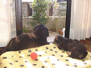朝起きて窓を開けたとたん母さんが「ぎゃ〜〜」って叫んだの お庭の木がまた倒れてたの〜ゴールドクレストっていう木らしいんだけどね、思ったより 大きくなって「迷惑やわ〜邪魔やわ〜」っていつも母さん言ってるの 毎年台風の度に1本ずつ倒れちゃうの。起こしても枯れちゃうんだって きっともうすぐお庭に木が無くなるとボクは思うよ ボクはそのほうが走れるからいいけどね それとね、小春と並んでご飯食べたら、母さん大喜びで「待って待ってしゃし〜ん」って。 そんなに大騒ぎすることなのかなぁ? それに小春に「待て」は、まだまだ無理だよ〜 ![]() |