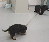 お家へ帰る支度をしてもらってたの。 リードをつけてドアの前で待ってたらね小春が来てリードをぐいぐい引っ張るんだよ!! 信じられないよ、ボク 母さんも父さんも「マック〜引っ張り返せ〜」って笑ってるんだ そんなこと言われても・・どうしていいか分からないからお地蔵さんになっちゃった それにしても、なんてヤツなんだ!プンプン!! ![]() ![]() すっぽんの小春に引っ張られ父さんに助けを求めるマック |
