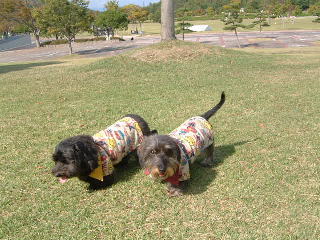 | 10月24日(木) お休みをもらった母さん運転で希望が丘へ行ったよ 母さん勇気を出して10何年ぶりで高速に乗ったの 田舎の高速だからすいていて「へへへっ。楽勝や」なんて言ってるの だから今日が母さんの「独り立ち記念日」なんだって☆ でもね、父さんに借りた「ナビ」全然案内してくれなくて、いきなり 「間もなく目的地です」って言ったの。 もう、着いてたのにね。母さん「役立たず〜」ってプンプン みんなと合流して芝生の広場でいっぱい遊んだの おやつもいっぱい食べられるようになったね〜って皆に誉めてもらったよ 小春はね、いつになく静かにしてたの。変だったよ〜 ![]() 全員集合 ![]() 詳しくは、また後日UP〜♪ |