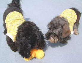 | 10月2日(水) 事件でしゅ!きのうの夜、兄たんが父たんのお手手ガブガブしちゃったの あたち達寝る前に1時間位にボール投げをしてもらってたんだけど 父たんが「もう終わり」って言ったら、兄たんはまだ遊んで欲しくって お手手ベロベロ舐めてたの それを止めさせようと手を持っていったらガウッだったの 父たんの手は赤く腫れてまちた 兄たん、あお向けにされてお口キュされたんだけど「ごめんなさい」しなかったの 後で兄たん、父たんのお顔ペロペロしてたけど・・ 父たんと母たんはちょっと困ったお顔でお話ちてまちた |
