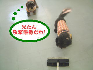 | 12月28日(土) 今日は仕事納めとかいうものらしくって、母たん一日中お掃除してたわ あたち、掃除機が大嫌いでガタガタ震えて逃げまわっていたの 「掃除機は終わり〜」って安心してたら次はぞうきんのついた棒だったわ@@ でも、これはあんまり怖くなかったし、兄たんは引っ張りに行って叱られてたの〜 ![]() ![]() ![]() ![]() ![]() 母たん、おもしろがって、わざと兄たんの前にモップをちらつかせるの。悪趣味よね この後また恐怖の掃除機が出てきて、兄たんはやっぱりかかって行ったの でも、頑張り過ぎて掃除機にプロロロロ〜〜って吸われちゃったのよ。多分「舌」だと思うの〜 さすがの兄たんもちょっと腰が引けてたわ〜 あたち?ピカピカになった床にウ○チしちゃったわ〜うふっ♪ |