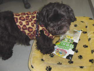 | 2月10日(日) 今日は小春が来てから初めて夜のお留守番だったの 心配だからってずっとお出掛けしてなかったらしいよ 父さんと母さんは美味しいものを食べてきたんだって〜 お土産はケーキとマフラー おいしいお店の近くに「DogTree」っていうワンコのお店〜 そこならボク、去年行ったよ 隣に甘くておいしい物があるお店でしょ 「今度は是非一緒に」ってお店の人に言われて「行かなくっちゃね〜」って 行く時はお隣にも絶対寄ってね〜 ![]() |