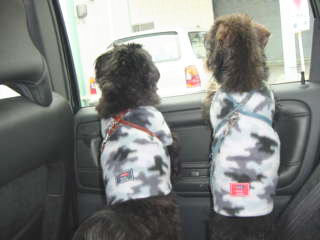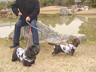 | 2月2日(土) 父さんのお仕事について行ったの お仕事の間、母さんと小春と車で待ってたんだけどふたりしてフンフン泣いちゃって 母さんは「私がいるのに〜」ってふくれてたの ![]() お仕事が済んで守山の「ドッグマン」っていうショップへ〜 母さんが付いてきた目的はこのお店だったの きのう小春はハーネスを噛み噛みして壊しちゃったからね〜 「やっぱりお揃えで〜」ってボクのも色違いでね お星さまの柄のハーネスとリード。ボク達の黒い毛にはピッタリだよ 帰りに草津の帰帆島公園でお散歩〜 でも、寒くってすぐ車に戻ったの おニューのハーネスとリードを早速着けて ![]() |