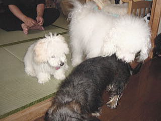 | 5月5日(日) 今日は家族でお出掛けしたの 遊ちゃん、竜くん、萌ちゃんのお家〜 その後「タバサ」へ行って遊んだの 久しぶりのお出掛けで、とっても楽しかったよ 「初めまして、あたち小春〜」 ![]() 竜くんに迫るマック。ワンコに自分のほうから近づくなんて初めてのこと ビックリ〜〜カマップル誕生か!? 【タバサ】にて ![]() ![]() |