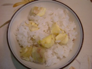 月曜日に続いて2回目の栗ご飯でしゅ〜 ホクホクして、とっても美味しい栗でちた サンクママしゃん、パパしゃん、ありがとう〜♪ あたち達もおすそわけ頂きまちた^^ ![]() |