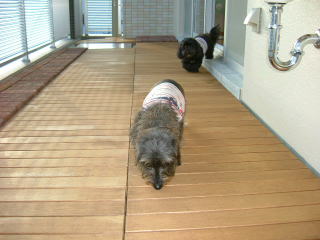 むか〜し、母さんがガーデニングもどきにはまっていた頃の名残でプランターや鉢がいっぱいあるの 忙しくなってお手入れも出来ないから可哀想って、この頃は全然お花の無いボクんち なんとか残ってたチューリップ、ボクが丹精してたやつもね、小春がほじくり返してダメにしちゃったんだよ 今日はとってもいいお天気だったから、母さんはりきってお外周りのお片づけしてたの ボクと小春もずーっと一緒にお外でウロウロ お外を通るワンにワンワンご挨拶してたら、裏にいた母さん何度もすっとんできては 「マックが邪魔するから、ちょっともはかどらない」ってお怒りの様子 そう言われてもボクにもガードマンの意地ってのがあるもんね〜 ![]() おばあちゃんちに植木屋さんが〜ちゃんとお仕事してるか見張ってるボク^^ ![]() その頃小春は裏でウロウロ〜 ![]() ちょっと目を離した隙に小春が〜「ねぇ、そこはボクの指定席だよ!」 ![]() 「母さん、小春がどいてくれないよぉ〜」 ![]() こうなったら実力行使だ。「どいて!!」 ![]() ちょっと兄の威厳を見せてみました^^ |