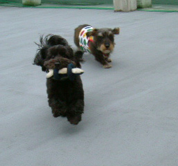 雨が止んでお外にでまちた そしたら兄たん、いきなりダッシュちてお空を見上げてワンワンでしゅ 兄たんは「アホ・アホ言うな〜」って言ってワンワン カラスさん、行ったり来たりちて「あほあほ」言ってまちた 兄たん飛びあがっても届かないのでくやちそうでちた ![]() ![]() その後で母たんにおもちゃを投げてもらって追っかけっこちまちた あたち・・おもちゃしか見てなくて兄たんに体当たりちてちまいまちた 兄たん思いっきり吹っ飛んですごく怒ってまちた でも、ゴロンちてごめんちゃいちたら「しゃ〜ない」って言ってくれまちた |