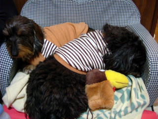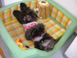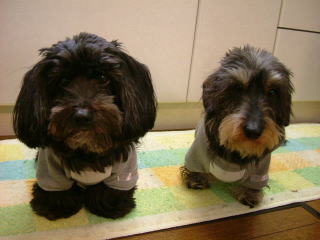 今日の一日は会社のガレージでの母さんの悲鳴で始まりました 途中で助手席に自主移動したボクをまず降ろして〜 「は〜い。次、小春〜」って言いながら後ろのドアを開けた母さん固まりました 《ちゅぎ、あたちね〜》ってピョンピョン跳ねてた小春、う○ちまみれです〜 座席のマットを見てもっとびっくりです 声にならない声というのは、ああいう「声」だとボクは知りました とにかく先に二階へあげられたボク 小春も母さんもあがってこないのでヒャンヒャン鳴いてました しばらくすると父さんに抱えられ上がってきた小春は洗面所へ直行でした 白状すると、う○ちをしたのはボクです 本犬のボクはサッサと前へ移動して涼しい顔をしていました ボクが急に前へ行ったので小春は「あたちも行きたい〜」ってジタバタして踏み踏みしてしまったのです 付け加えると、前の日にアイスクリームを頂いたので、今朝の「それ」は、いつになく柔らかなのでした〜@@ |