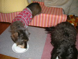 月曜日の夜中に、しっこがしたくなってベットから降りたの トレーの中をくるくる回って一生懸命頑張ったんだけど出なかったの ボク、こんなの初めてだったから、ベットに上がったり降りたりしてたら、母さんが「どうした〜?」って起きたの 母さんが起きたから小春も「朝でしゅか〜?」って降りてきて、くるくる回ってるボクを邪魔するし〜 ボクは「下に降りる〜」ってリビングに連れて降りてもらったの リビングのトレーでもくるくる・うろうろ・・・でも、どうしても出ないの そうしてるうちにだんだんお座りも出来なくて、歩くのも辛くなってきたの 少ししたら、ボクと母さんがいないことに気がついた父さんも降りてきたよ ボクの様子を見て母さんが病院に電話して先生に行ったの〜それが5時だったよ おちんちんに管を通されたら(><)しっこが出てきたの〜真っ赤なおしっこだったの 血を採られて検査してもらったけど、何も悪い所がなかったから 当直の先生が「副院長に詳しく検査してもらいますので」って〜ボクはお預かり 父さんと母さんは7時前に帰って行ったの お迎えまでの間に色々されたけど、何もなかったんだって〜ちんちんは詰まってたんだけどね しばらく病院通いになりそうなボク・・・ イヤだよ〜 +++++++++++++++++ 寝る前までいつもと変わりなかったのが、突然でオロオロしました トレーの周りをウロウロから始まって嘔吐が三度・・・・ パンパンに張ってきたお腹を見て即受話器を取りました かかりつけの病院が24時間体制であったことに救われました 診断は「膀胱炎」かなり重症のようです 膀胱の内膜が剥がれ落ちてボコボコの状態で、その剥がれ落ちた膜が 尿道に詰まったのではないか、ということです 先生の説明で若干気にかかることもあるのですが・・・ 今回「石」は見つかりませんでした 原因は「抵抗力と菌とのバランスが崩れた」ということでした 人間で言えば過労や睡眠不足で抵抗力が衰え・・・と言う事でしょうか 今回何がマックの抵抗力を低下させたのか分りません マックが治療してもらっているとき「不覚だった」自分に気づきました 小春のストラバイト結晶で、おしっこには気をつけていたのに 「マックは大丈夫」そんな過信があったのです マックも、もうすぐ8歳です 少しずつ全てが衰えてきていることを心に留めておかなくてはいけないのかもしれません ご心配頂きありがとうございます 少しずつですが、回復に向かっています マックママ |