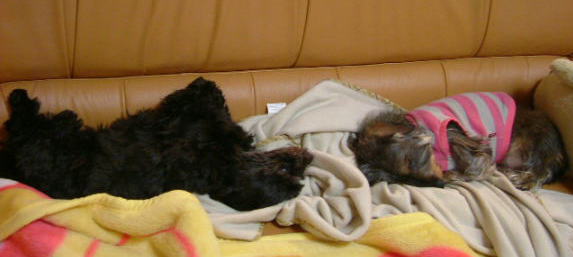 懐かしいソファが帰ってきまちた〜 新しいソファは長さが短くて、「足が伸ばせん!首が曲がる!」って 母さんのブーイングの嵐だったんでしゅ ソファで撃沈する母さんが悪いんだと、あたちは思うんだけど、とても言えましぇん だけど、このソファで大きくなったあたちは、嬉しくって独り占めしてましゅ 乗せて貰えない兄たんは、そこらに転がってましゅ(* ̄m ̄) ![]() すやすや〜気持ち良かぁ〜 ![]() |