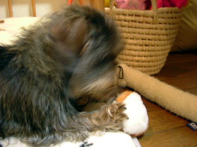 じるみーちゃんちから昨日届いたおもちゃ あたちのツボでちた(-^〇^-) リングの付いた紐を引っ張るとプルプルするんでしゅ 母たんは『獲物』だと思ってるね〜って。だって、あたち狩猟犬でしゅよ(^_-)-☆ 兄たんはプルプルするのが気に入らないらしくて「うぉーん、うぉーん」って遠吠えしてましゅ(≧m≦) ぷっ! 兄たんの【横目】に注目してくだしゃいね^^ ![]() 遠吠え一秒前(≧m≦) ぷっ! ![]() ![]() 上手にお手手で押さえて引っ張るの 兄たんを脅して独り占めなの^^v |