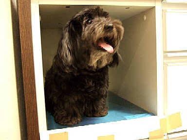 ゲージから出ようと頑張る昨日の様子に、やっぱりゲージは断念 そりゃイヤだよね〜10年以上好きに動き回っていたのだもの クレートの訓練しておくべきだったかも・・・・ テレビの後は通り抜けても危険の無いよう、スピーカーも撤去 電源も抜いての出勤 テーブルの上に上がるのには椅子が絶対必要だから、椅子もテーブルから離して〜 今日は大丈夫かと思ったのも束の間 カメラを見ると椅子の位置が少しずつ変わっている しまった。やっぱり部屋の外へ出してくるべきだった〜 昼休みに急ぎ帰宅 椅子を撤去。だけのつもりが、とんでもないことになってました 部屋へ入ると、キッチン(流し)から「わ〜い。お帰り〜」とばかりに尻尾を振る黒いおっさん カウンターからテーブルへ、見事な身のこなしで移動してくる テーブルを見ると、お醤油が思いっきりこぼれている 何度も行き来していたのだろう あちこちにマックの足跡が。醤油スタンプ? お醤油の飛沫を飛ばしながら 「抱っこ〜」と、飛びつかれ、思わず「やめてくれ〜」と叫んだのでした 足、お尻、尻尾と、見事に香ばしいかほりに包まれておりました その後は、シャンプー及び大暴れの後始末 私の手と腰には只今湿布が貼られております (異常に疲れると人間は躁状態に入るというのが分ったのでした) しかし。椅子を動かすという荒業は、想定外でした^^; 本日はマックの勝ち |