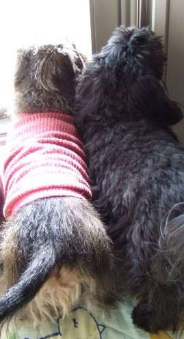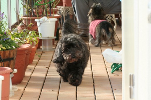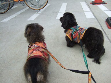 明日から、またお留守番になるからって、お散歩に行ったの。 父さんはゴルフに行っちゃったから、ピンチヒッターはケイちゃんなの。 ボクはケイちゃんと。小春は母さんと歩いたの。 今日の小春は俄然張り切っちゃって、ボクに幅寄せして前へ出たりするんだよ。 ボクもケイちゃんにいいとこ見せたいから、頑張ったの^^v 小春はスプリンターでボクはマラソンランナータイプだからね 最後はボクの勝ちだよ(#^.^#) ケイちゃんが郵便局へ寄っている間、前でお利口に待ってたの^^ ![]() |