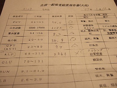 今日は、母さんとふたりでドライブでした 母さんは、あまりに道が混んでて運転中に「寝そうや〜。マック、何か喋れ〜」なんて言ってました ポンポコリンのお腹を見て貰いに行きました いつもの肝臓のエコーは1ミリ弱の成長でした(良かったね^^) ただ、血液検査が、びっくりの数字だったそうです 日曜日に再検査です 朝9時に病院入りなの。母さん早起きしてね ![]() ALP=2263 @@ |