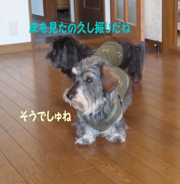 この頃小春の後追いがひどい 朝出かける時、鳴く喚く抱きつく・・・ ジャンプして抱きつこうとするのを、なんとか止めさせたい この間の「針事件」の時、レントゲンを撮ってもらったら、割とキレイに背骨も写っていた 先生曰く「怪しいと思って見れば怪しい箇所が二箇所。ピョンピョン飛ぶのは止めさせて」と うっ・・・・止めさせたいのだ レンドゲンがどうこうではなく、ダックスの大敵は分っているもの しかし、毎朝益々ひどくなるピョンピョン。どうしたものか・・・・ ![]() 頼むから止めてくれ・・・ 君が飛ぶたび母の白髪が増えるのだ>< |