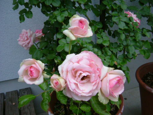 沢山の香りに包まれた5月も過ぎ、少し寂しくなってきた庭 もう葉だけになっているバラも、次の蕾をつけ始めたバラも、それぞれの歩みで息づいている 新しい葉を出し枝を伸ばし・・・強い命を感じる瞬間 「お疲れさま〜」や「頑張れ〜」と知らず知らずに声を掛けている私って、怪しいかも?(≧m≦) 早くから咲いてくれたフランシス・デュプリュイ 少しお休みして雨の日に開花 最初のお花より、随分小振り また、クンクンしなくっちゃ〜^^ ![]() 雨に濡れるコテージ。寄り添っているように見える ![]() 今日の食卓での会話 パパさん「あの枝だけのはどんなのが咲くの?」←(レディ・ヒリンドンとセリーヌのこと) 私「アプリの混じった黄色と色んな色に変わるのと」 そんな説明ではサッパリ分る筈もなく、育てておられる方のお写真を見せた パパさん「きれいやね〜」と、画面に見入る 購入した枝だけの頃は殆ど興味が無かった彼だけど、お世話をしたことや 咲く姿の美しさに少しずつ興味が出てきたようだ 先日園芸店へ行った時も、もう少しで【ブルーヘブン】をお連れしそうだったパパさん 来年からの場所の問題で、思い留まってもらった だって・・・まだ私がお迎え予定にしてるのがあるんだもの〜(((爆爆))) |