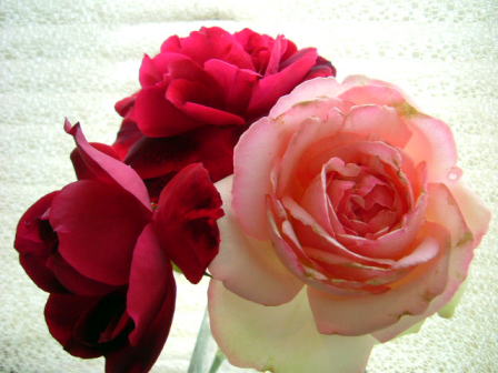 今日は朝から雨・・・とうとう入梅 これから京都は人にもバラにも厳しい季節です ムシムシと湿度・温度とも高いイヤーな毎日 バラにも新たなお病気が出そうだし、要注意 何度撮っても変な色になってしまうデュプリュイ もっと落ち着いた良い色なのにねぇ ![]() 二番花がこんなに咲いてくれたの これで葉っぱも美しかったら言うことなしなのに〜 ポンタ(後のたぬき)も見てます ポンタ〜いい香りでしょ?(#^.^#) ![]() お部屋の花が切れてしまったので、デュプリュイとピエール君を切る デュプリュイは外で香るより更に濃く香っています 大好きなブルームーンの香りと似いてるかも(#^.^#) ![]() |