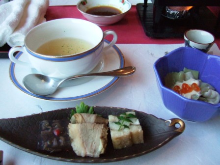 夕食のメニューです 海老・蟹アレルギーの私 (伊勢えびはパパのお腹へ) 松坂牛を追加で注文してご機嫌でした (海老を二人前食べた人も肉を食らう) 牛さん、霜降りなのに、全くしつこくなくて まだまだいけそうでした 流石、松坂牛〜 |