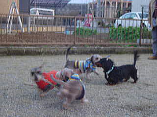 しばらく遊んだ後、お鍋の用意が出来るまで近くの公園までみんなでお散歩に行ったの