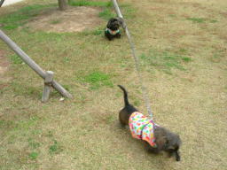 | 一緒につながれていたリードが木に引っかかり・・ | 小春の馬鹿力に動けなくなるマック |