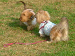 約1ヶ月振りに再会のワンコ達^^ みんな元気にしてたかな〜 顔を合わせてもワンワン言いません もうすっかり覚えたね♪ |