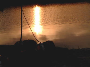 沈む夕日がお池に映ってキレイでした^^