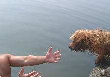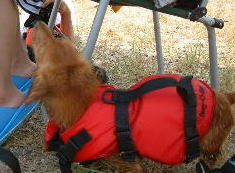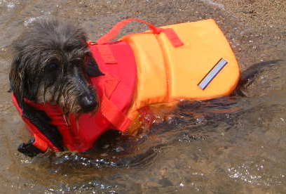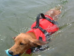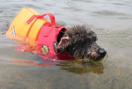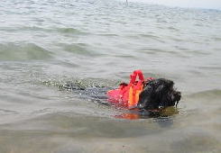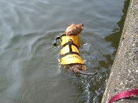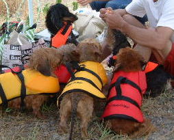 | 初泳ぎだったのに平気だったね | タロウおもちゃを咥えて余裕の泳ぎ | 水嫌いのマック。めっちゃ真剣 (カカロットさん撮影) |