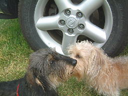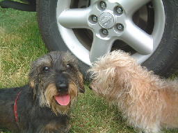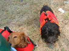 | ちこちゃん、ラック・花ちゃん。初めまして〜 | カカロットさんに川に入れてもらった小春とマック。今日はたくさん泳ぐんだよ〜 | |