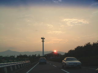 帰り道。沈む直前の夕日