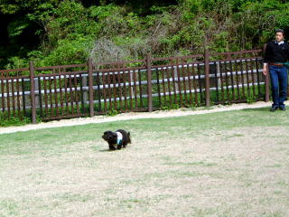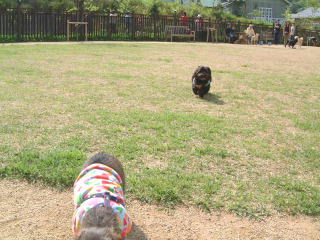 | マックを走らせる為、ママも走る! | 走っているというより逃げてる? | 反対側へ走っては呼ぶの繰り返し〜^^ |