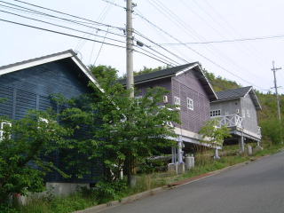 | 坂道に並ぶログハウス | 車も横付けできるので荷物の運搬は楽々 |