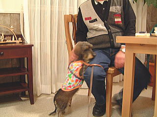 | 脚が短いのですっかり埋もれてしまうほど。マックいいお顔〜♪ | ||